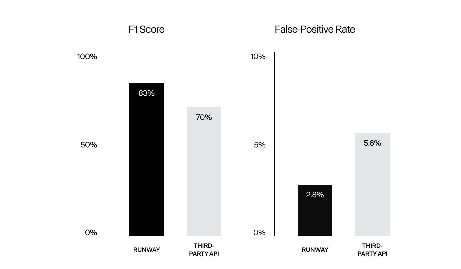 Throughout the process of honing our safety guardrails, we have learned that striking a balance between artistic liberty and harm prevention is incredibly difficult to achieve. We continue to refine our perspectives as our generative models improve and popular culture evolves. Overall, our in-house model performs significantly better, achieving an F1-score1 1: The F1 score is a metric used in machine learning to evaluate the performance of classification models, combining both precision and recall into a single value. of 83% and recall of 88% compared to the best-performing third-party API we’ve tested (F1-score: 70%, recall: 79%), and has a lower false-positive rate (2.8% vs. 5.6%) when evaluated on data that the models have not seen before.