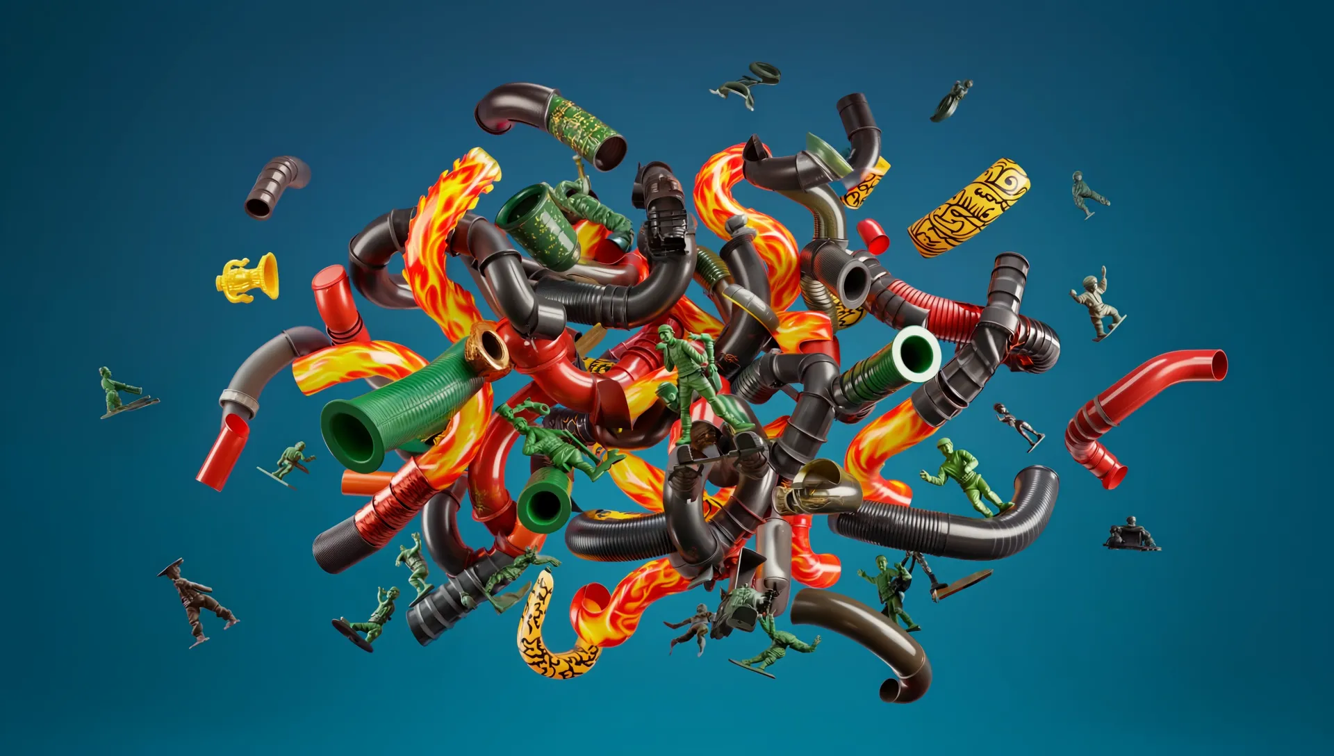 Everyday items burst into perfectly choreographed chaos against bold monochromatic backgrounds. Each composition freezes a moment of controlled destruction, turning simple objects into dynamic sculptures of motion and energy.