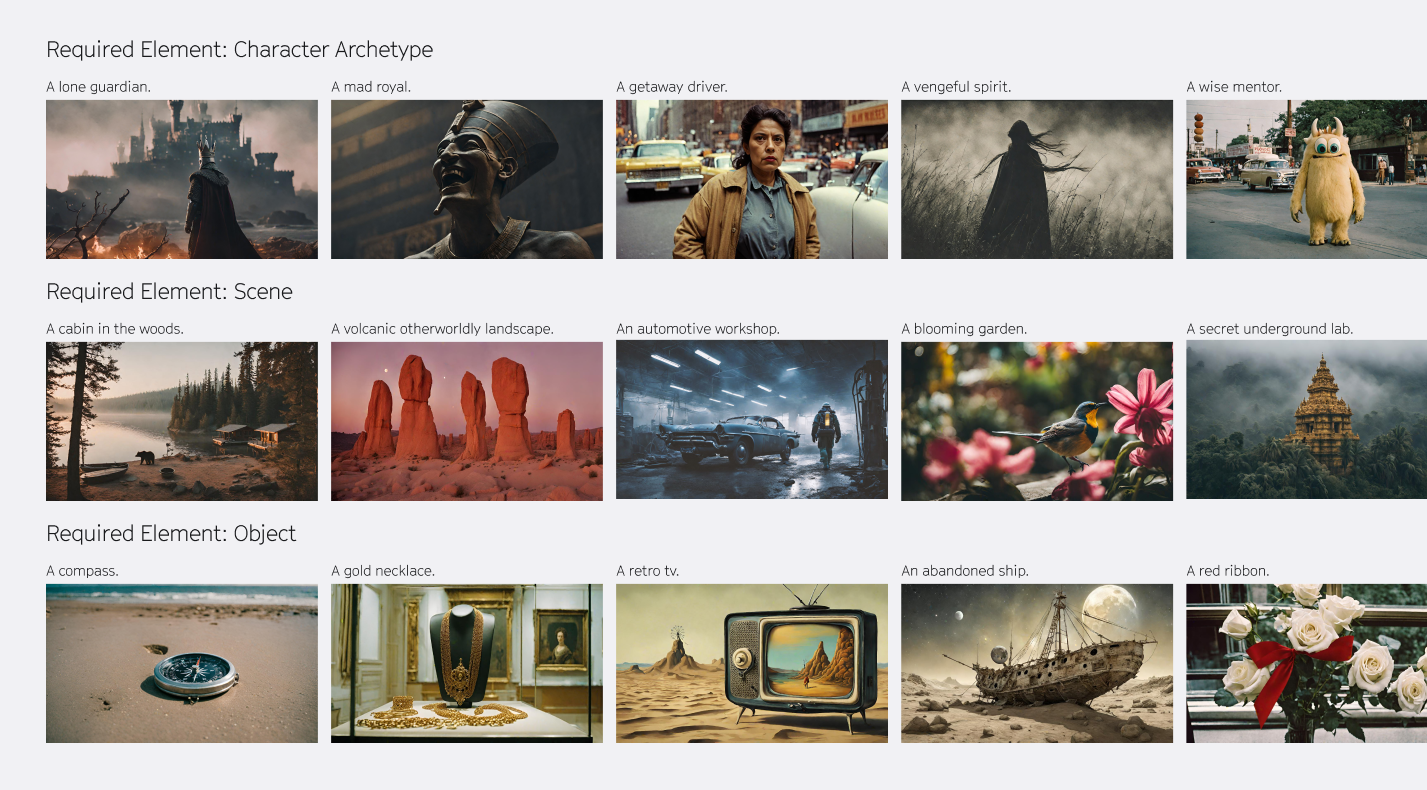 My first stop is to use an LLM (Large Language Model), not for its writing ability, but for its ability to kickstart the brainstorming process. In this competition it is extremely helpful, as there are so many possible combinations of story elements. So I give the LLM all the rules for the contest, and the list of the three elements, and it immediately starts to give me numerous top level story ideas that I can use as a starting point. I ultimately choose a misunderstood character, in an art museum, with a lit candle.